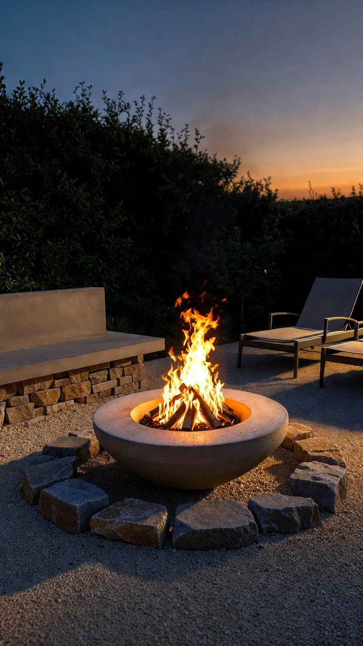 Minimalist fire features pair beautifully with gravel, stone, or tiled patios and help extend outdoor use into cooler seasons.