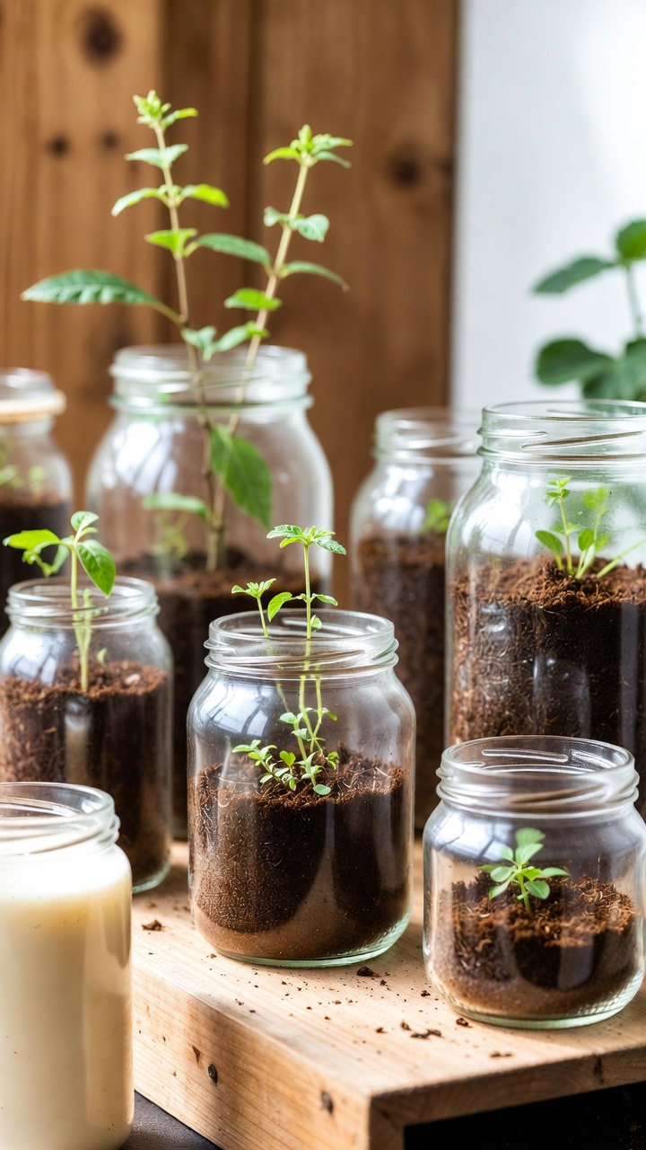 Jars are perfect for propagating plants. Many species, like Pothos and Snake Plants, can easily grow new roots in water. A simple jar of water is all you need to start new plants from cuttings, making it easy to expand your collection or share with friends.