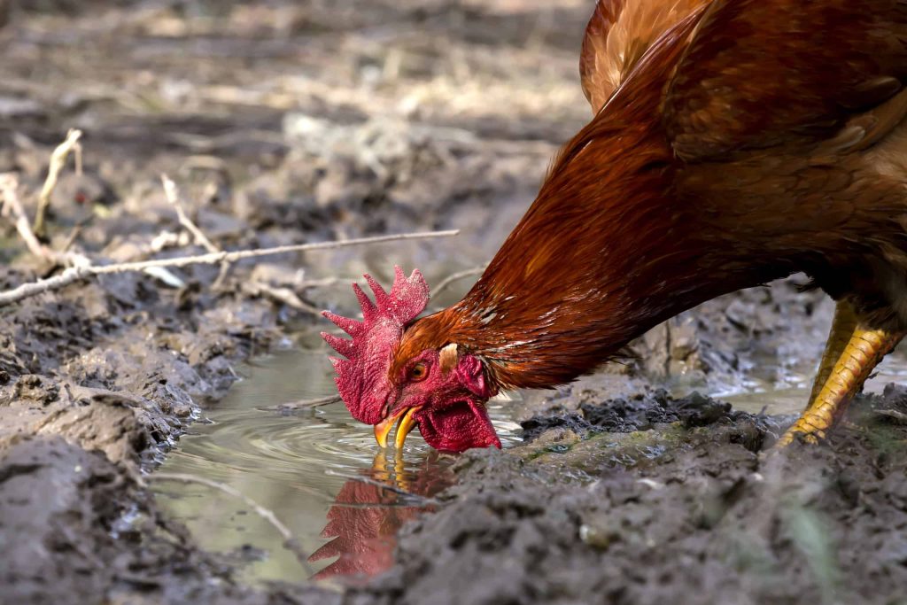 Drinking an extreme amount of water helps chickens to reduce the chance of having heat stress. Also, Chickens spread and flutter their wings to release their body heat.